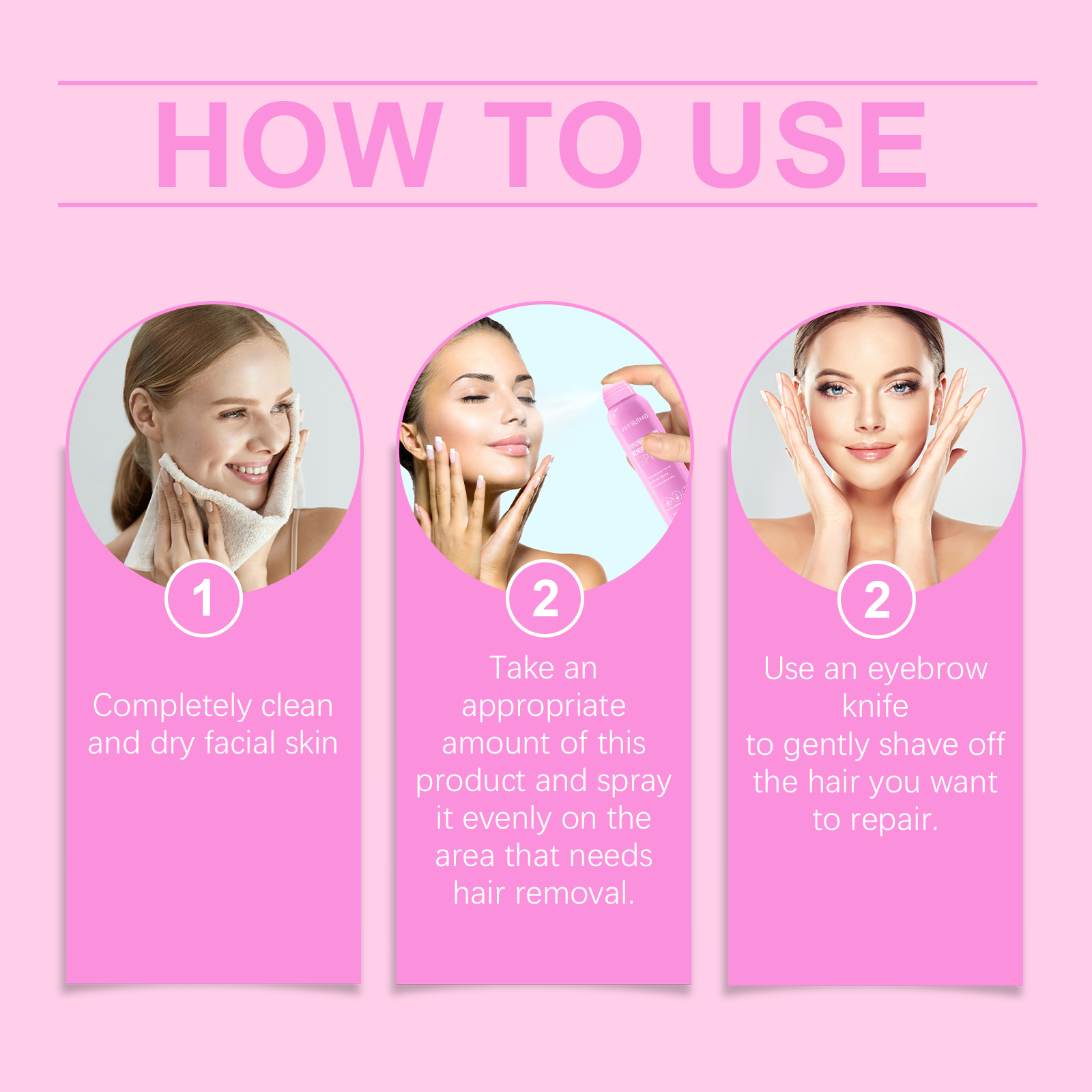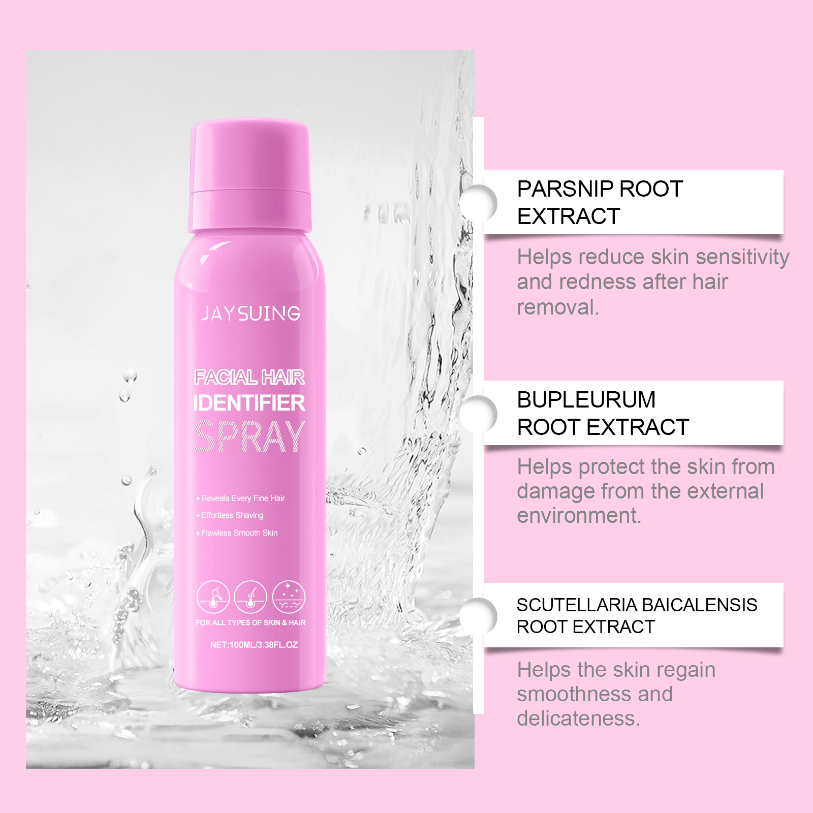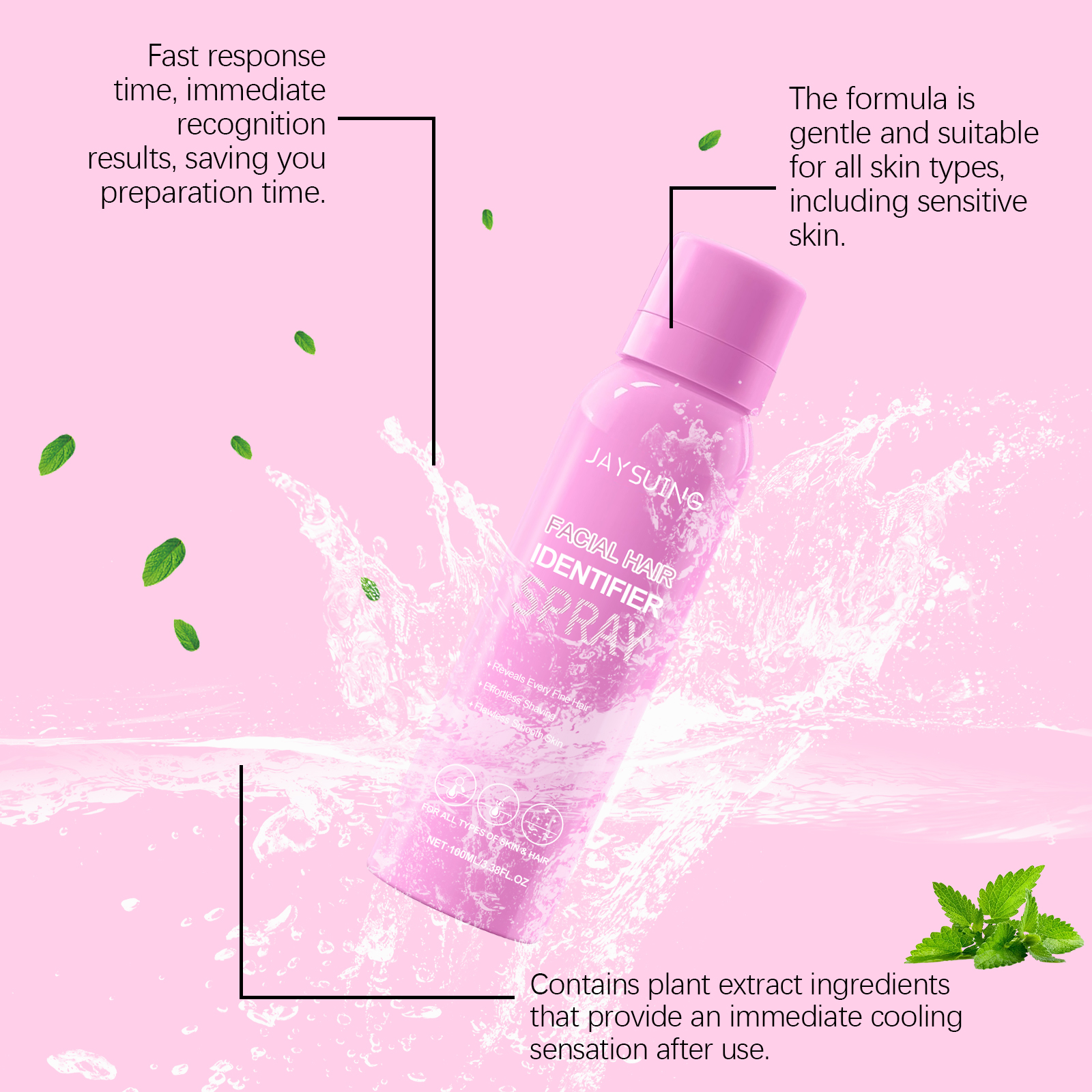 Jaysuing Facial Hair Recognition Spray Facial Cleanser Softens Hair Gentle Daily Care Hair Removal Spray